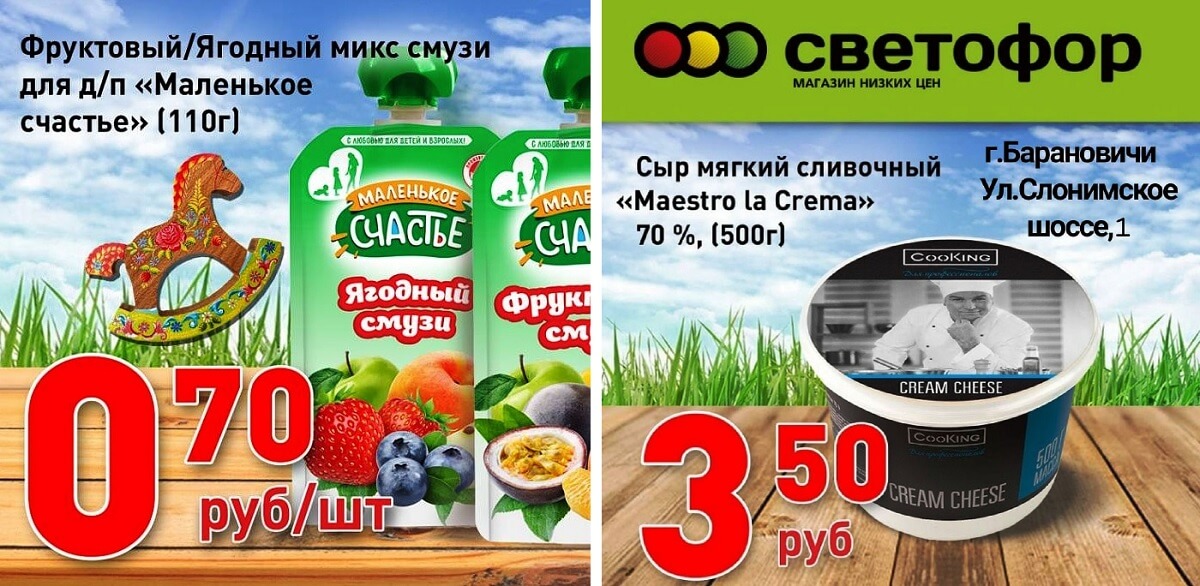 Магазин СВЕТОФОР в Барановичах дает Вам отличную возможность потратить время с пользой и приобрести продукты по самым выгодным ценам!